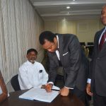 The former Gov. of Cross Rivers state Donald Duke signing the condolence register at the residence of Senator Ngige who lost his Father recently...